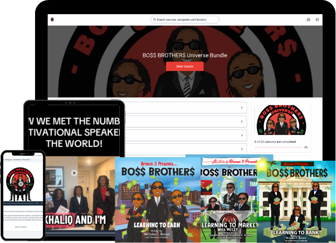 The Boss Brothers Universe Bundle brings together three inspiring children’s books and a powerful confidence-building course designed to teach kids how to think, lead, and create like young entrepreneurs.
